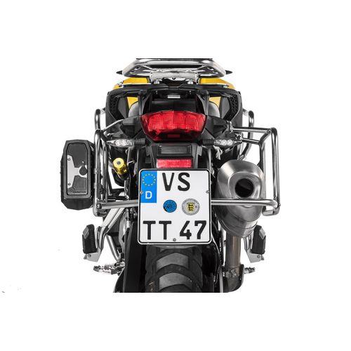 С помощью специальных зажимов бокс можно легко и очень быстро установить на рамки Touratech. Защитный колпачок на замке защитит от брызг замок.