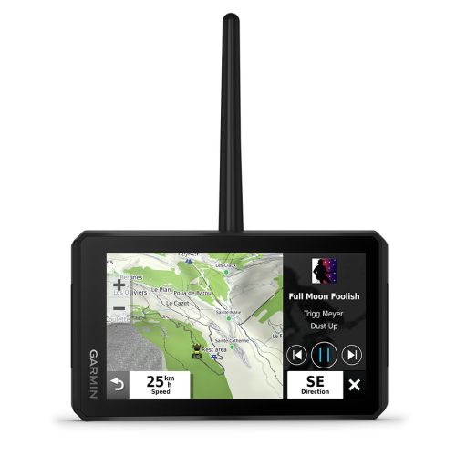 motorcycle and in the car. The Garmin Tread's extensive range of