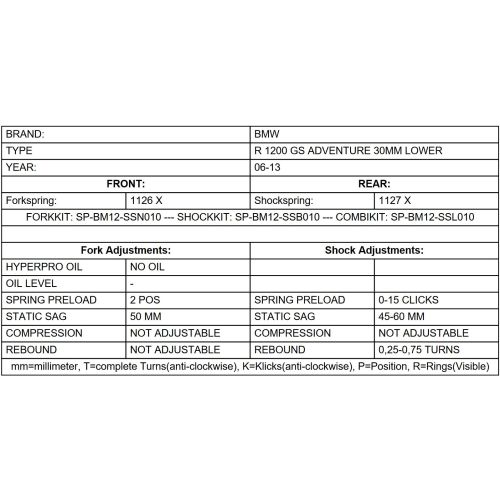 Información: Sólo se adapta a BMW R1200GS Adventure 2006 - 2013 con amortiguadores Showa originales