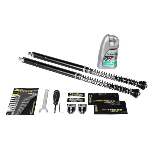 Комплект картриджей обеспечивает наилучший баланс Triumph Thruxton-R. Предварительная нагрузка, отскок и сжатие пружины полностью регулируются сверху. Демпферное масло находится в закрытом картридже, поэтому количество масла точно дозируется. Закрытый картридж обеспечивает точную регулировку демпфирования. Это означает наиболее эффективную настройку подвески, адаптированную к Вашему личному стилю вождения, независимо от дорожных условий или предполагаемой манеры езды. Будь то автомагистрали, федеральные трассы, маленькие проселочные дороги или скоростные шоссе. Даже самые сильные дорожные воздействия на переднее колесо поглощаются встроенным гидравлическим концевым упором.