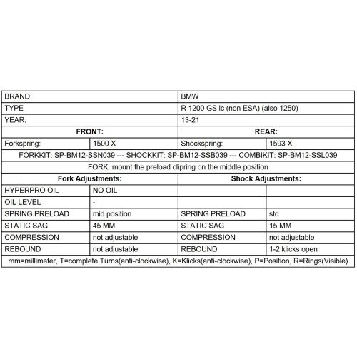 This Set of progressive replacement springs has been designed to match the BMW R1200GS(LC)/R1250GS perfectly, and offer a "tremendous improvement" in response and greater safety in extreme situations. Replacing the front and rear springs will lead to a significant improvement and more riding pleasure with your motorbike.