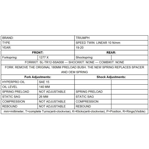 Пружины вилки BLACK-T Уровень 1 линейные Triumph Speed Twin с 2019
