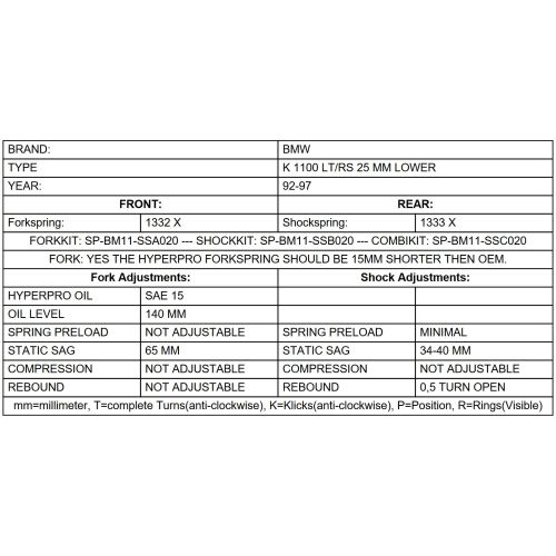 Touratech Suspension lowering kit -25mm for BMW K 1100 LT, K 1100 RS 1992 - 1997