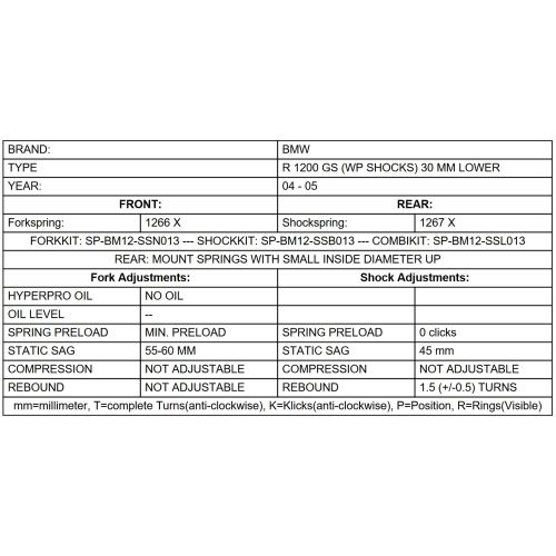 Touratech Suspension lowering kit -30mm for BMW R 1200 GS 2004 - 2005