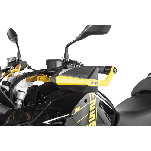 Элементы руля являются одними из самых уязвимых частей мотоцикла. Прочная защита оберегает рычаги от повреждений. Защита имеет кронштейн, который поддерживается рядом блоков с зажимами, таким образом, образуя так называемый "якорь". Этот принцип зарекомендовал себя на мотоциклах для ралли в самых тяжелых условиях.